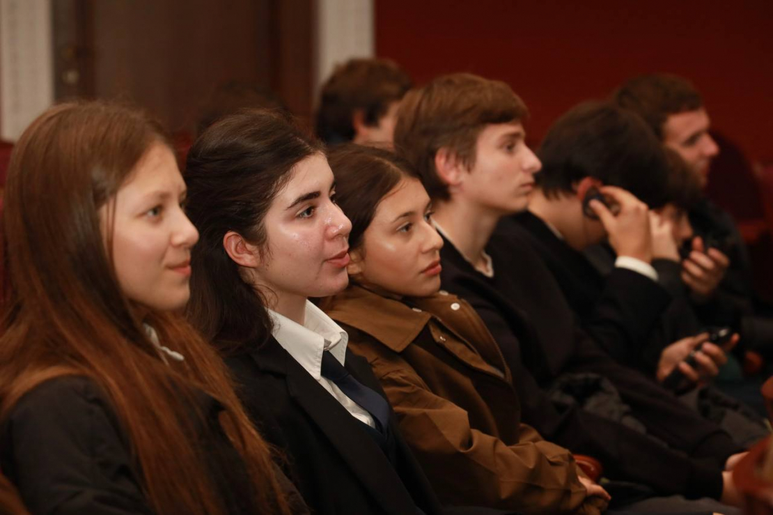 The lecture's topic was "Depth of traditions, sincerity of the heart: the foundations of Abkhazian ethics." The invited speaker, artist Nodar Tsvizhba, discussed with the students the fundamental principles of Abkhazian ethics and traditional norms of behavior embedded in the people's cultural code.