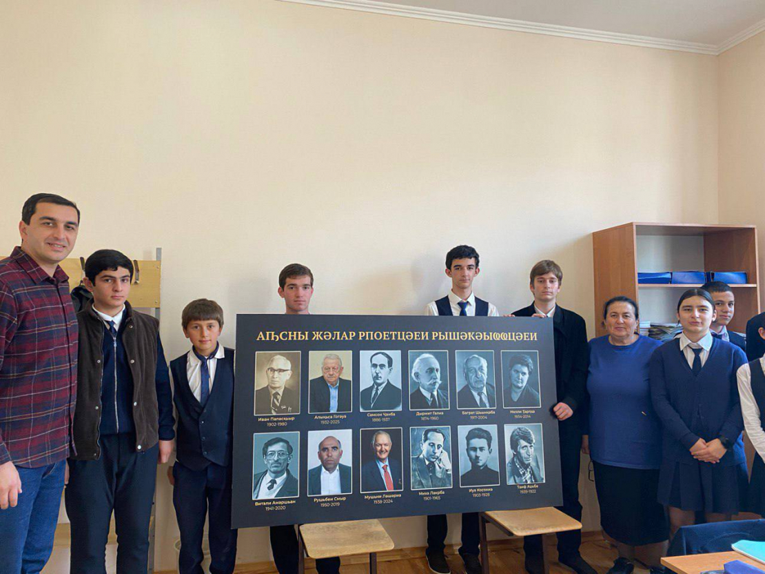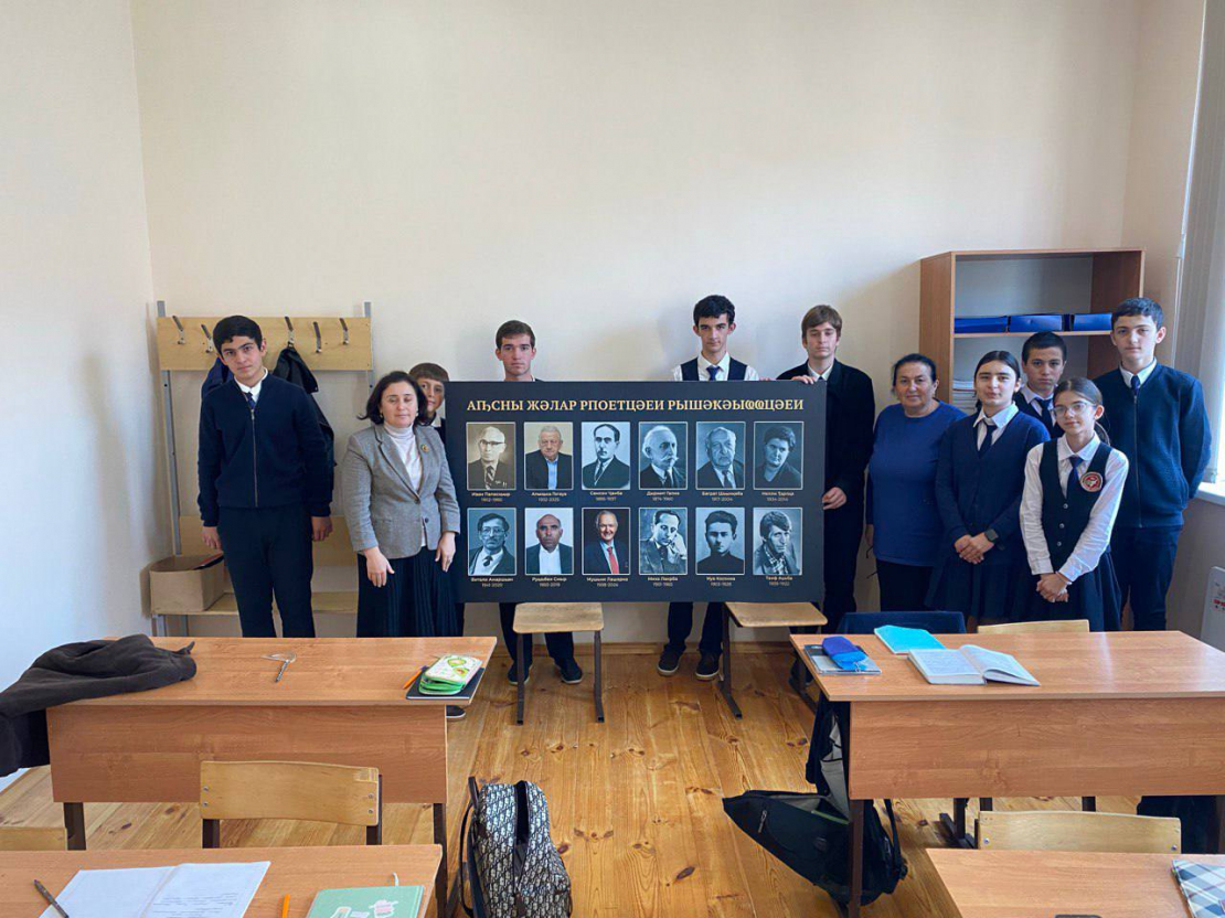 At the initiative of the local branch of the WAC, a new display stand has been installed in the Abkhaz language room of the Primorskoye Secondary School. It features photographs of prominent Abkhazian writers and scholars. We would like to thank the ad agency "Avantage," represented by its director, Vladimir Selvyan, for making the display stand free of charge.