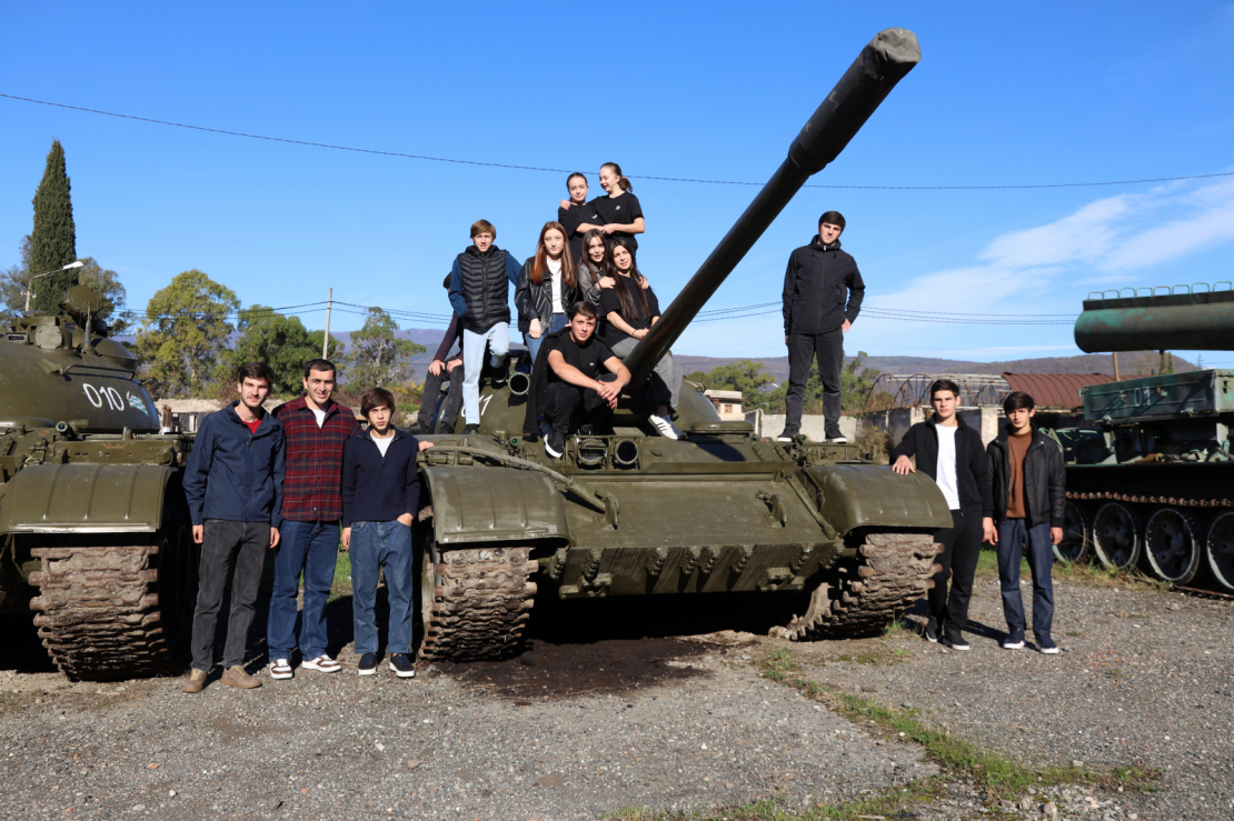 The event consisted of two parts. First, the students visited a military unit in Sukhum, where they were shown various examples of military equipment and received a detailed explanation of the operation of small arms.