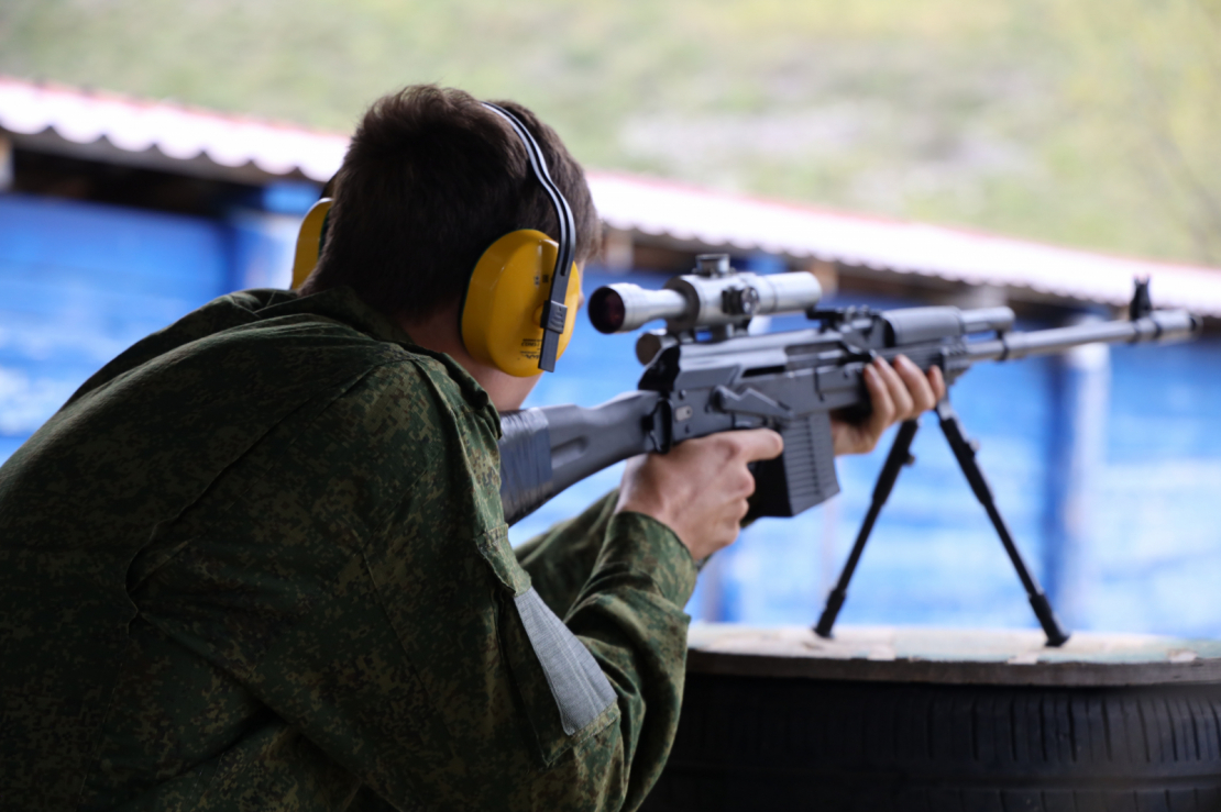 As part of the firearms training, an instructor showed the students how to stand, aim, and hold a weapon. After completing the theoretical part, the master class participants began shooting. It's worth noting that, given the high level of training, for the first time since the project began, the students had the opportunity to practice with a Saiga sniper rifle.