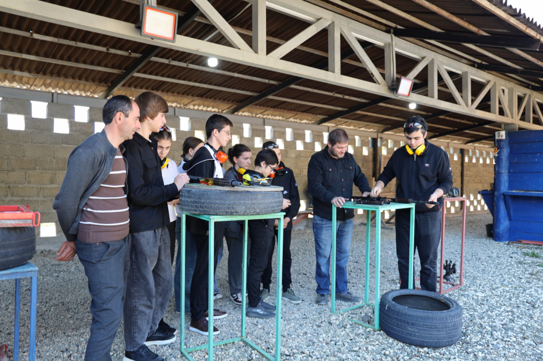 Следующей точкой маршрута стал стрелковый клуб. Инструкторы провели для учащихся дополнительный теоретический курс по технике безопасности и правилам обращения с оружием. Закрепление навыков прошло на учебном поле, где каждый школьник под пристальным контролем инструкторов выполнил практические стрельбы.